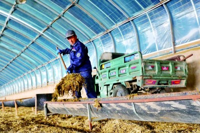 六苏木村村民在肉羊养殖场工作。 张家欣摄/光明图片
